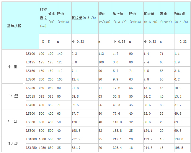 LS型螺旋輸送機(jī)技術(shù)參數(shù)表:
